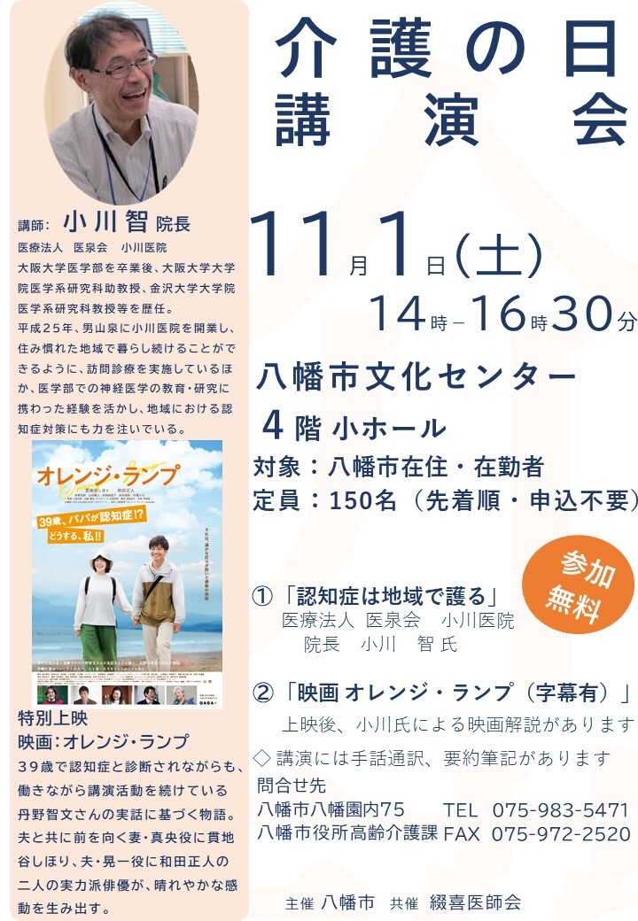 八幡市においても「介護の日講演会」を開催します。